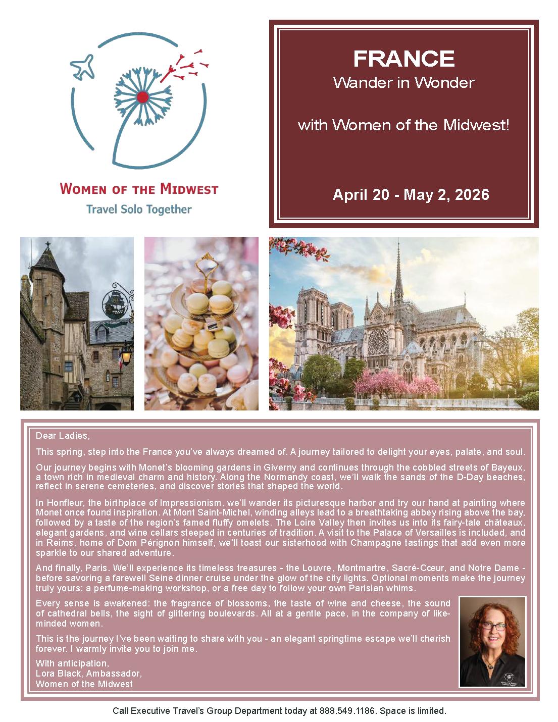 What a trip! Visiting Bruges in the Christmas season will be something I never forget...it was magical! I would really like to do another tour with Women of the Midwest and Lora is a Rock Star! She stayed calm and communicated to us well during the cancellation of our original flight. She was very helpful at all times and always positive. I loved having an Ambassador with us! Thank you to Women of the Midwest for making the arrangements! - Belgian Christmas Journey - 2025