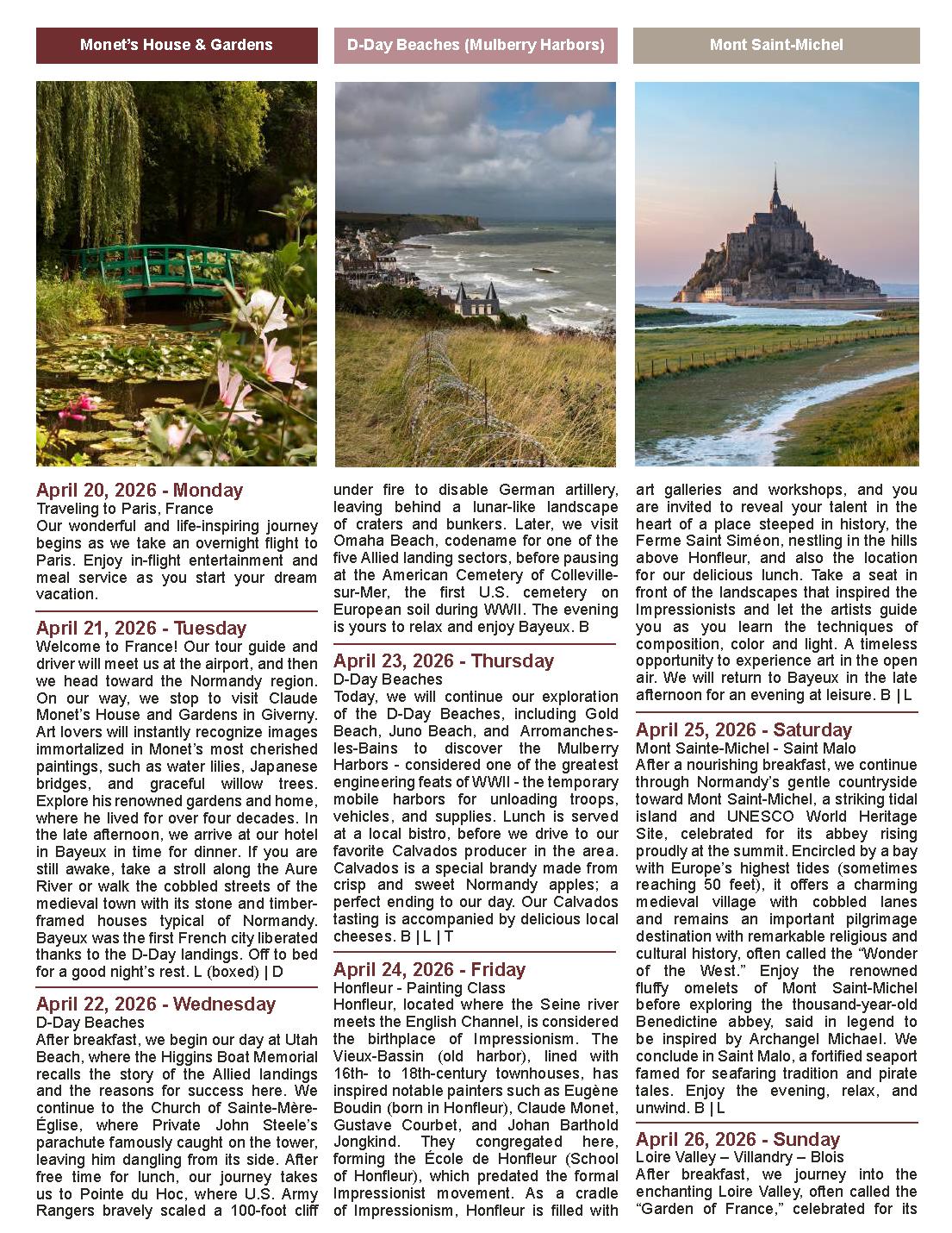 Group airfare, included in your package: Detailed itinerary will be available by mid-February 2026.