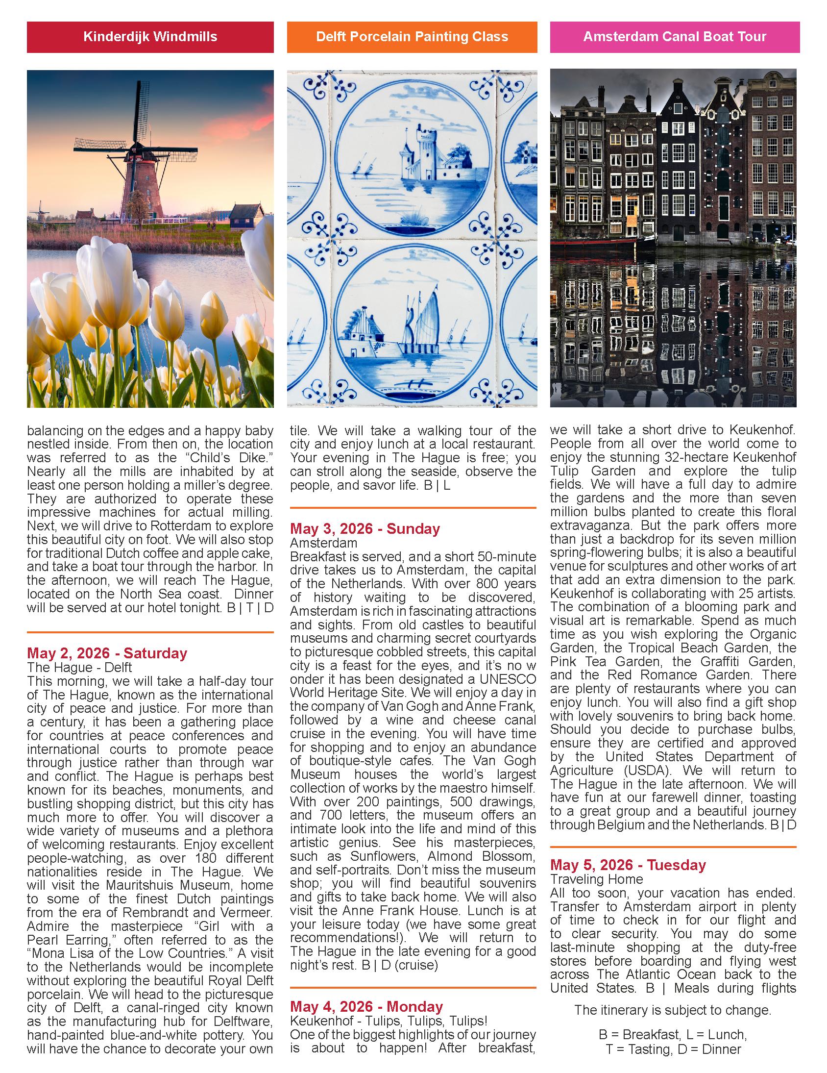 Belgium & the Netherlands (Second departure): April 26 - May 5, 2026