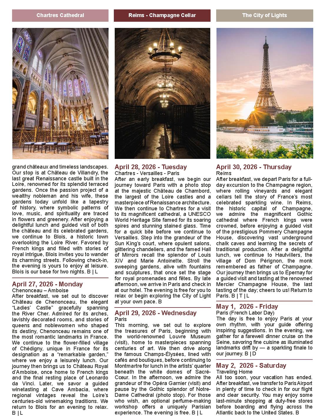 To request a brochure, click on the link below. Once the brochure is available, we will send you an email with a copy of the brochure. Tour brochures are available between 6-12 months prior to departure, based on a number of factors.