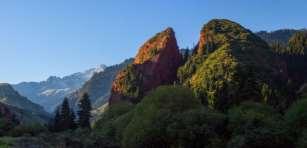 Posteriormente iremos al desfiladero Yeti Oguz a 2200m. En el idioma kirguiso significa “Siete Toros” debido a sus formaciones de arena rojiza cubiertas de bosques de coníferas del Tien Shan. Realizaremos una rutilla por la zona para
