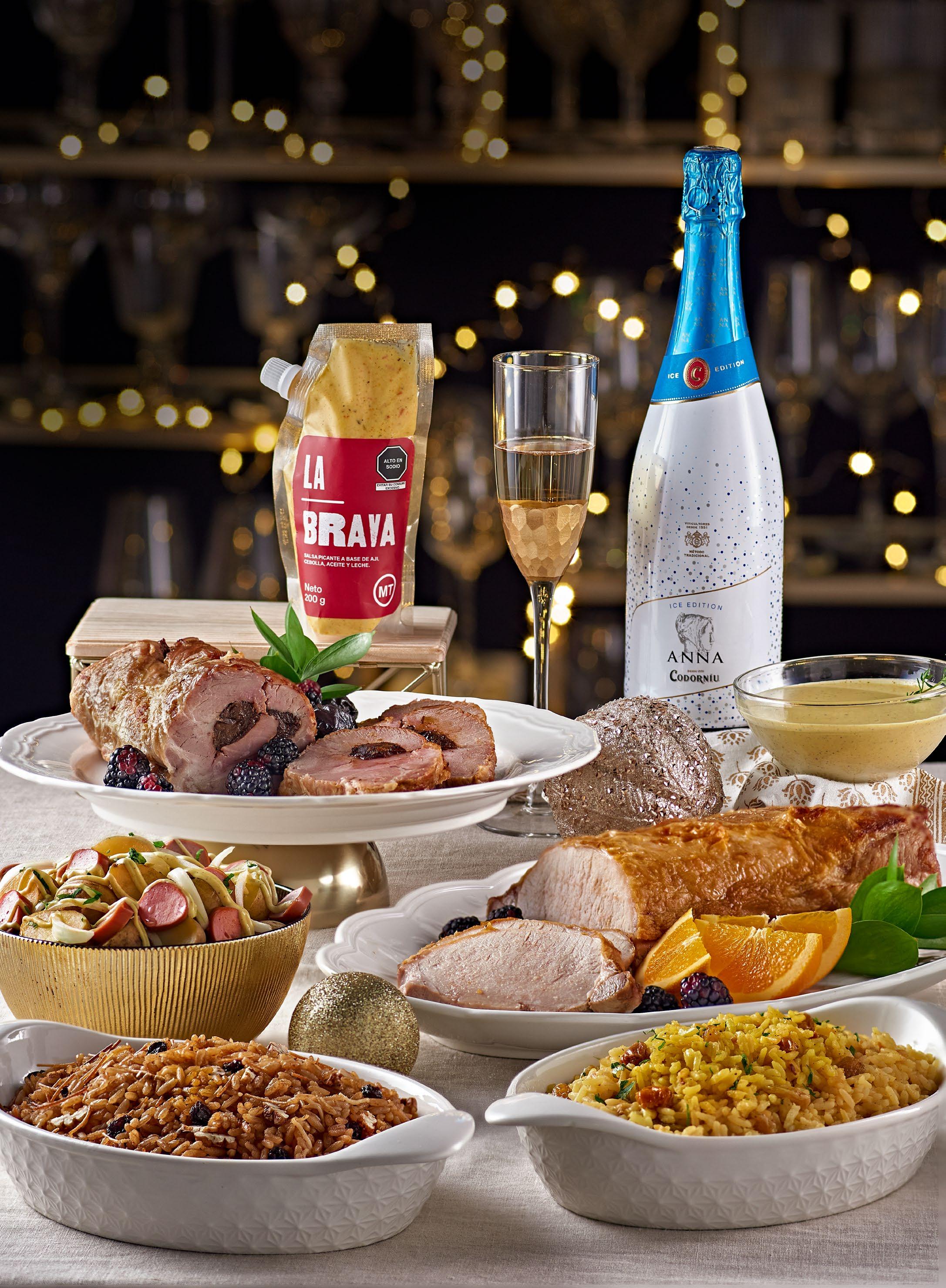 Cena Año Nuevo (6 personas) S/ 239 Precio regular: S/ 269 Precio oferta aprox. por persona: S/55 *Imagen referencial 1 2 3 4 5 6 7 Al comprar 1 Cena Año Nuevo + S/ 59.90, llévate 01 Cava Anna de Codorniu bot. x 750 ml TOMAR BEBIDAS ALCOHÓLICAS EN EXCESO ES DAÑINO 1. Enrollado de cerdo cocido x 800 g 2. Bife de lomo de cerdo horneado x 850 g 3. Ají de la casa x 250 g 4. Ensalada alemana x 500 g 5. Salsa La Brava MT x 200 g 6. Arroz árabe x 500 g 7. Arroz Pascua x 500 g + +10 % desct. Pagando con