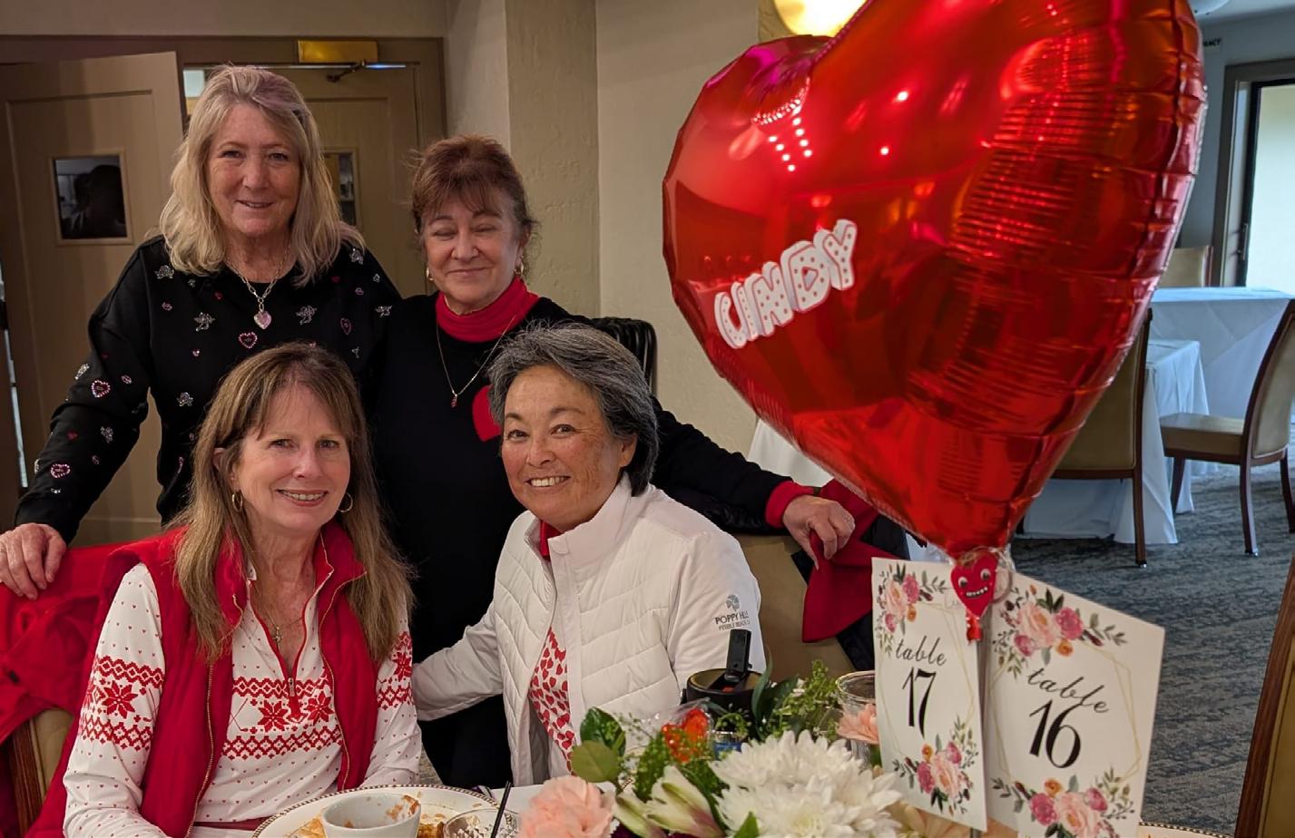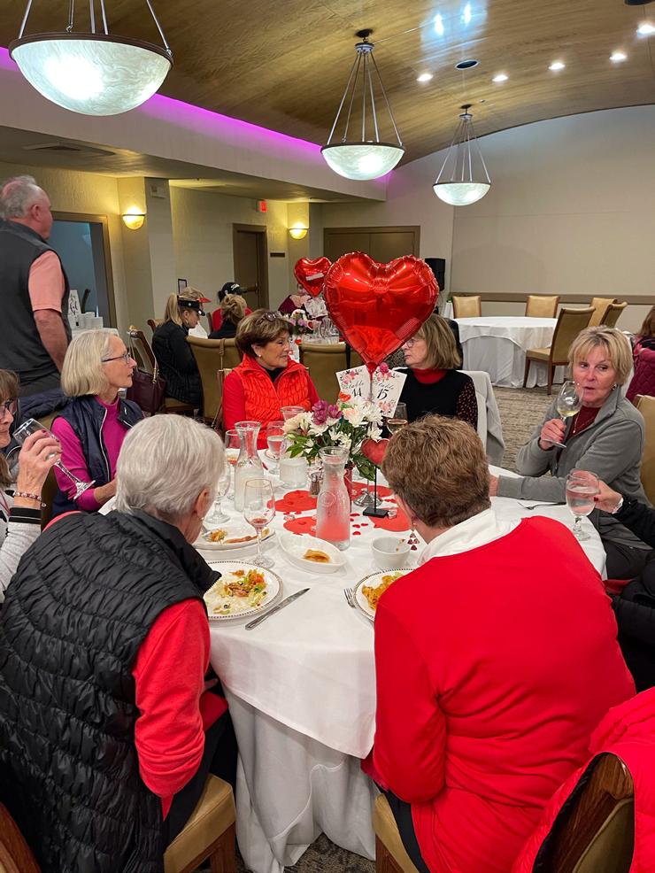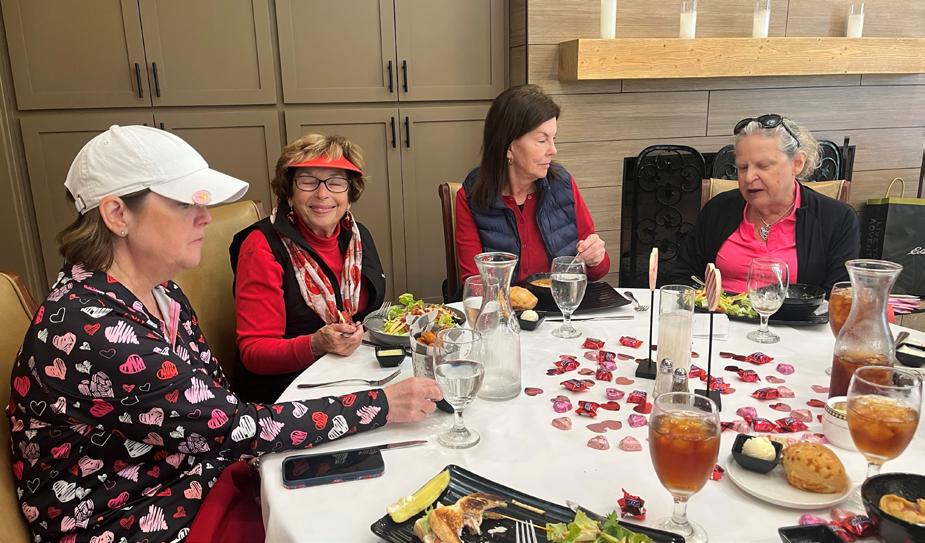 A wonderful time was had on February 12 for our Valentine’s event. Our hostesses, Jennie Fuller and Shannon Hagen, kept us engaged with a game of Mystery Valentine—we had no idea who we were playing with until the final tally! First place went to Juliet Fyffe and Kathy Cockayne, second place to Barb Parejo and Rhonda Craig, with third going to Patty Kooyman and Donna Aarons. Julie Scorpazzi surprised us all with Valentine-themed golf towels, and of course our wonderful kitchen staff sweetened our day with delicious treats.