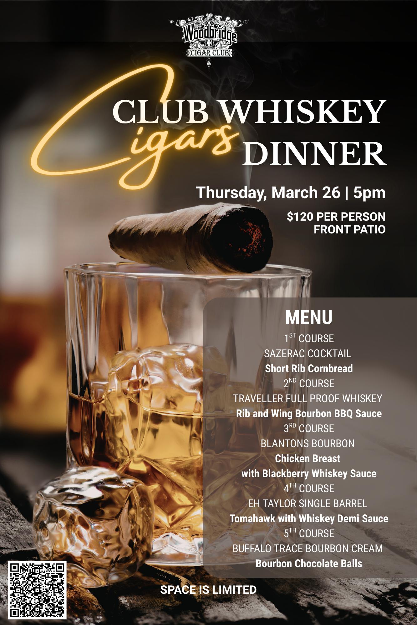 Mar 26: Cigar Club Whiskey & Cigars Dinner