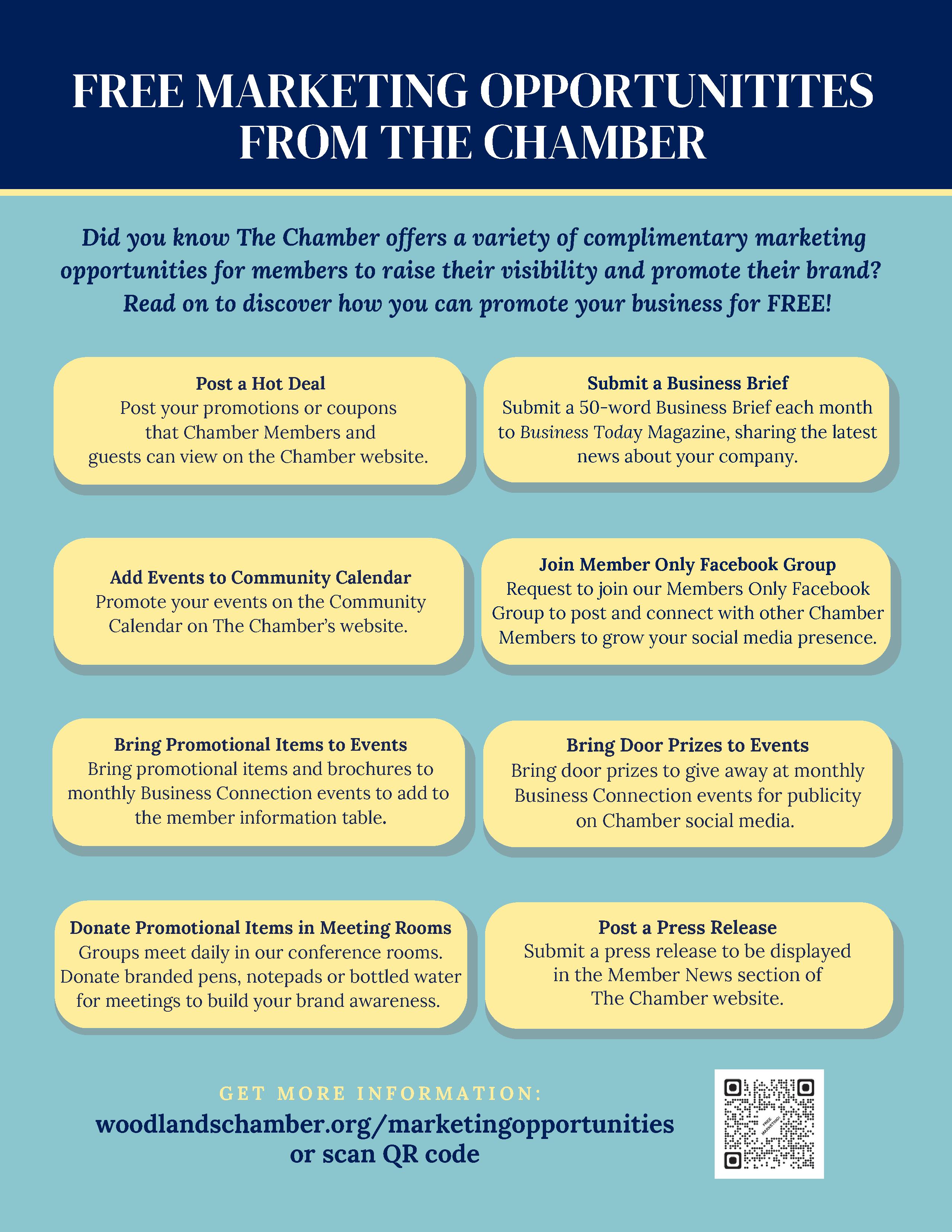 If you are a new member and have not given your one time only introductory commercial at Meet the New Members, please contact Cyndi Alvarado at cyndi.alvarado@woodlandschamber.org to get your name on the list.