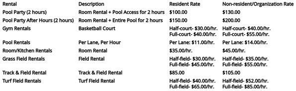 Additionalfeesmayapplyfor programs,camps,fitness classes,andotherspecialized services.
