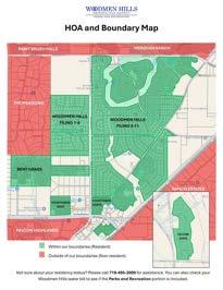 Non-residentsarethosewho liveoutsidethedesignated district(green)boundaries anddonotpaytheParksand Recreationfeeontheir WoodmenHillswaterbill.