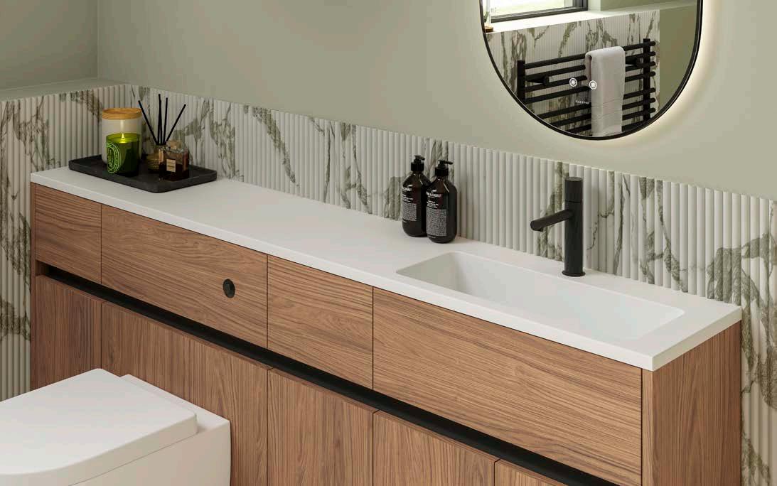 For Spring 2026, Calypso places material at the centre of bathroom design. Wood grains bring warmth and natural variation, helping spaces feel more relaxed and lived-in. Metal finishes introduce contrast and definition without overpowering the room, while stone inspired surfaces add a sense of permanence and balance.