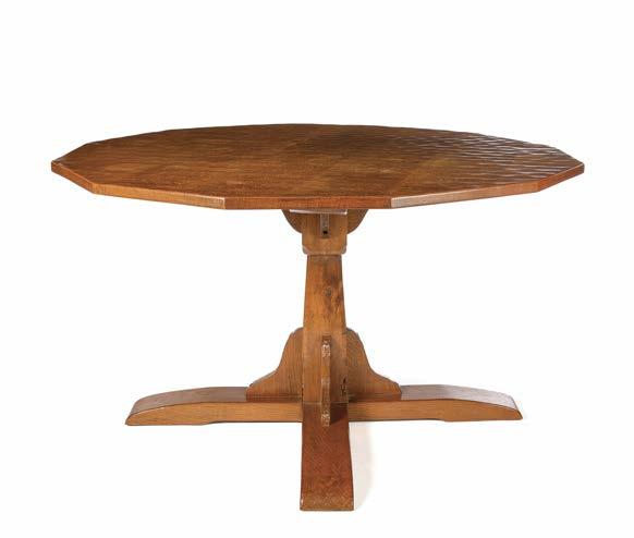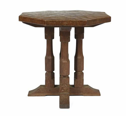 A Squirrelman oak occasional table with an octagonal adzed top over four octagonal supports carved squirrel signature 48cm high, 49cm wide.