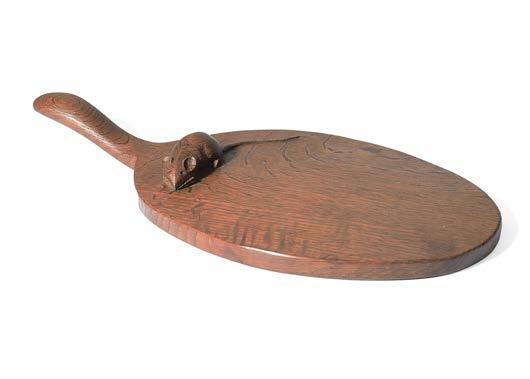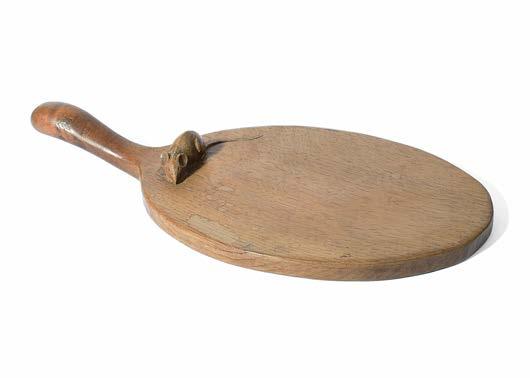 A Mouseman cheese board oak carved mouse signature to handle 38cm long.