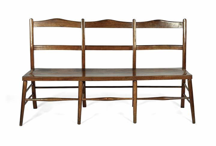 A three seater elm bench, circa 1920 90cm high, 152cm wide, seat depth 39.5cm.