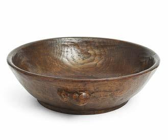 A Mouseman scalloped bowl, circa 1940 oak with an adzed surface carved mouse signature 8cm high, 24cm wide.