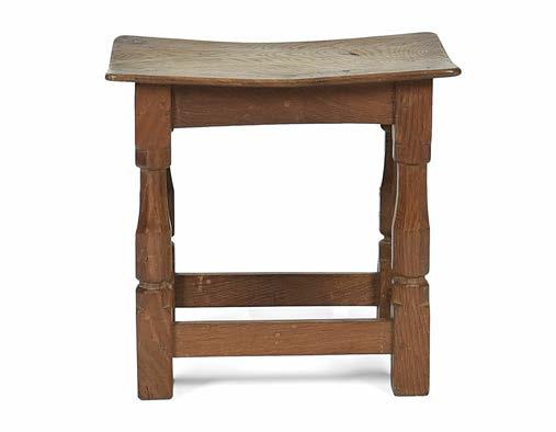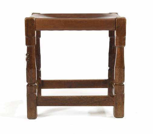 A Mouseman dressing table stool, circa 1930 oak with a slung leather seat carved mouse signature to one leg 46cm high, 44.5cm wide, 35cm deep.