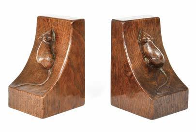 A pair of Mouseman bookends, circa 1930 oak with an adzed surface in places carved mouse signatures, both with long curly tails 16cm high, 9cm wide (2).