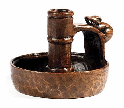 A Mouseman chamber candlestick, circa 1940 oak, with an adzed surface carved mouse signature 12cm high, 15cm diameter.