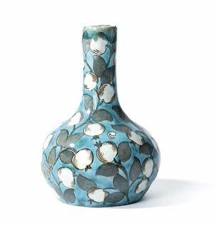 A Persian bottle vase by J S Babb painted with berried foliage stems in green and white on a turquoise ground painted monogram JB 14.3cm high.