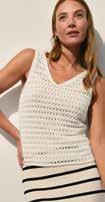 Knipst die Sonne an und funktioniert auch bei Nacht: Schmales, luftig gemustertes Top (kraus rechts/Lochmusterreihen) aus einem Leinengemisch in strahlendem Weiß. Mit dem Cardigan von Seite 18/19 avanciert es zum spektakulären Twin-Set.