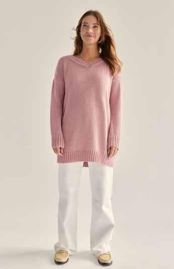 Bei diesem Pullover entscheidet die von Ihnen gewählte Größe über den Look. Seine Anleitung läuft bis Größe 48/50. Unser Model trägt eine 44/46.