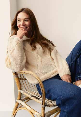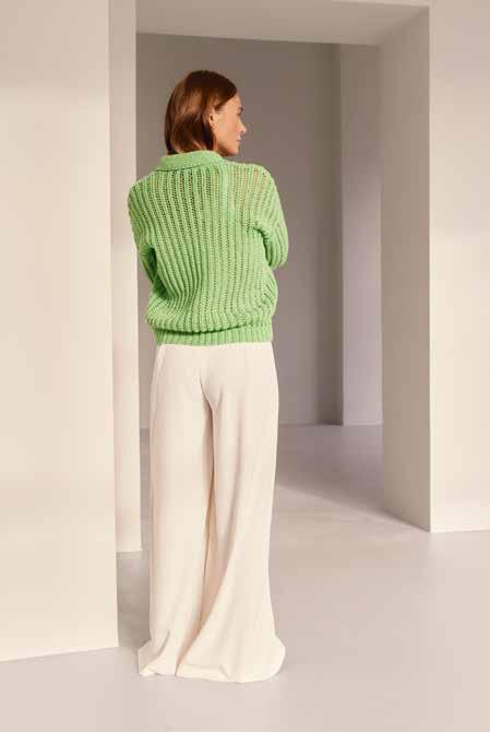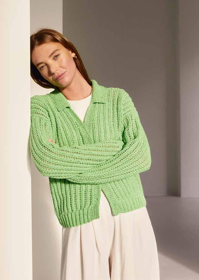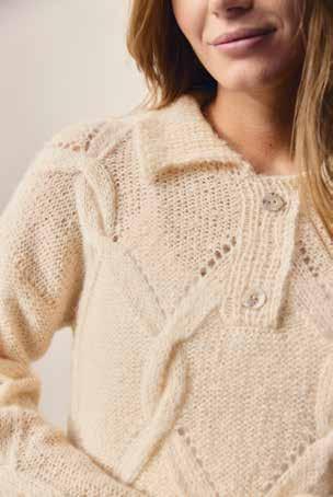 Zweifädig verstricktes Flauschgarn und ein großzügiges Ajour-Zopfmuster: Der klassische PoloSweater – hier mit femininem Twist. Die simple Silhouette macht ihn relativ unkompliziert.