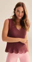 Rechte Seite: Für ein Plus an Raffinesse und Struktur wird hier quer und kraus rechts gestrickt. Der Farbton „Antikrot“ untermalt den Nostalgie-Look des Tops.