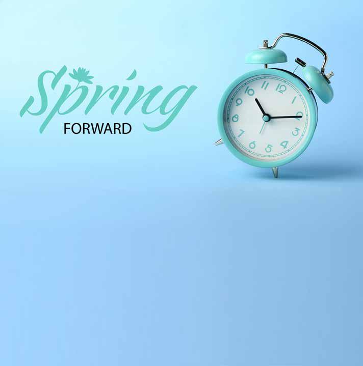 It’s time to spring forward! Daylight saving time begins at 2 a.m. on Sunday, March 8. Don’t forget to set your clocks ahead one hour.