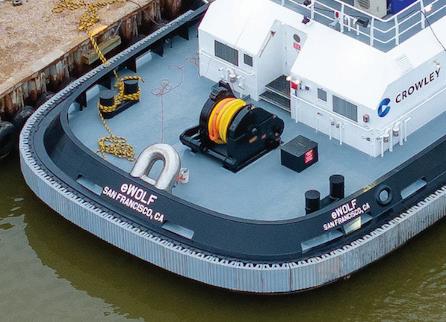 • eWolf — Crowley’s much anticipated 82'x40'x17'9" eWolf, the rst all-electric, ship-assist harbor tugboat in the U.S., was built in Coden, Ala., by Master Boat Builders. Crowley says the new tug will generate 178 fewer