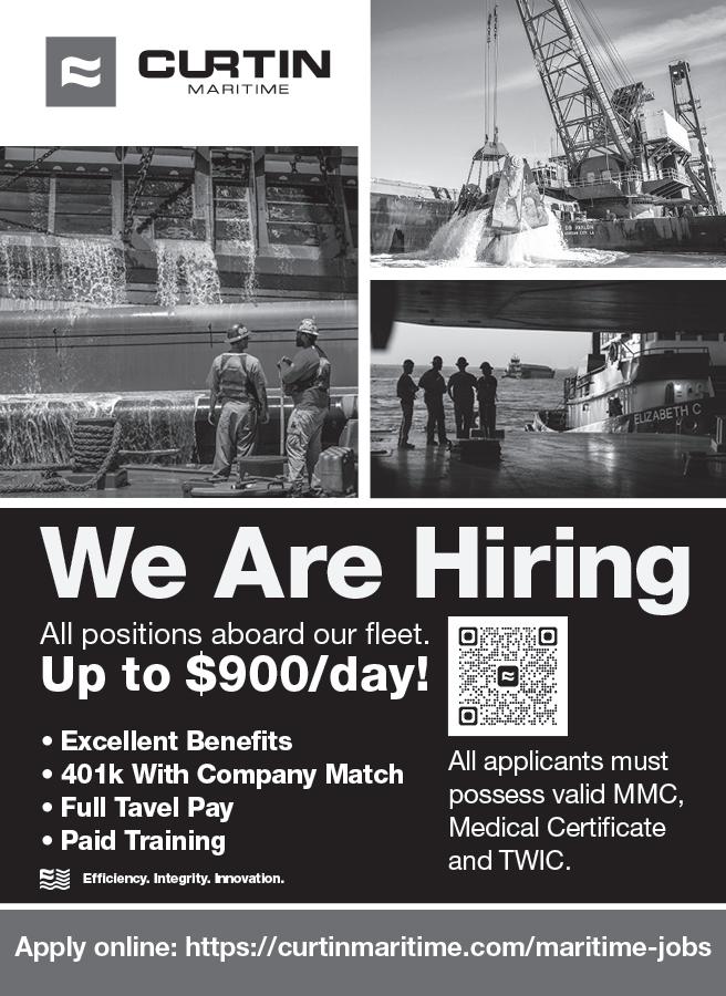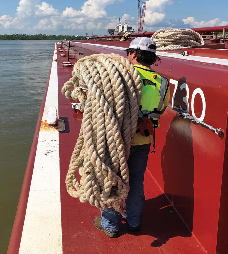 “More and more people are wearing safetytoed boots,” Werner said. That’s usually a steel-toed boot, though composite materials are also employed. “Steel or composite toes, that’s always going be a basic requirement on a towing vessel,” said Shea Milton, a pilot at American Commercial Barge Lines (ACBL) in Westlake, La.