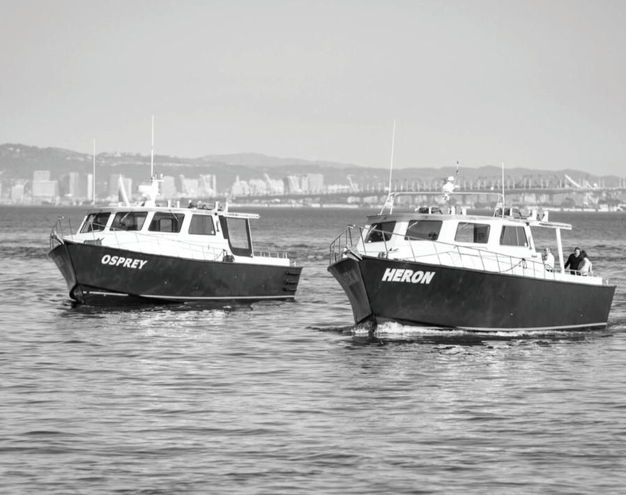 up to 40 mph fully loaded. The boats are powered by a single 185-hp diesel engine and use only 3.5 gph of fuel traveling on their foils.