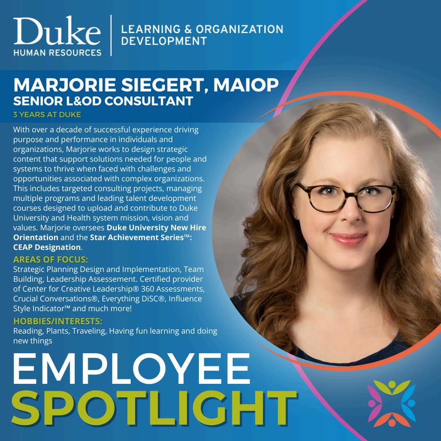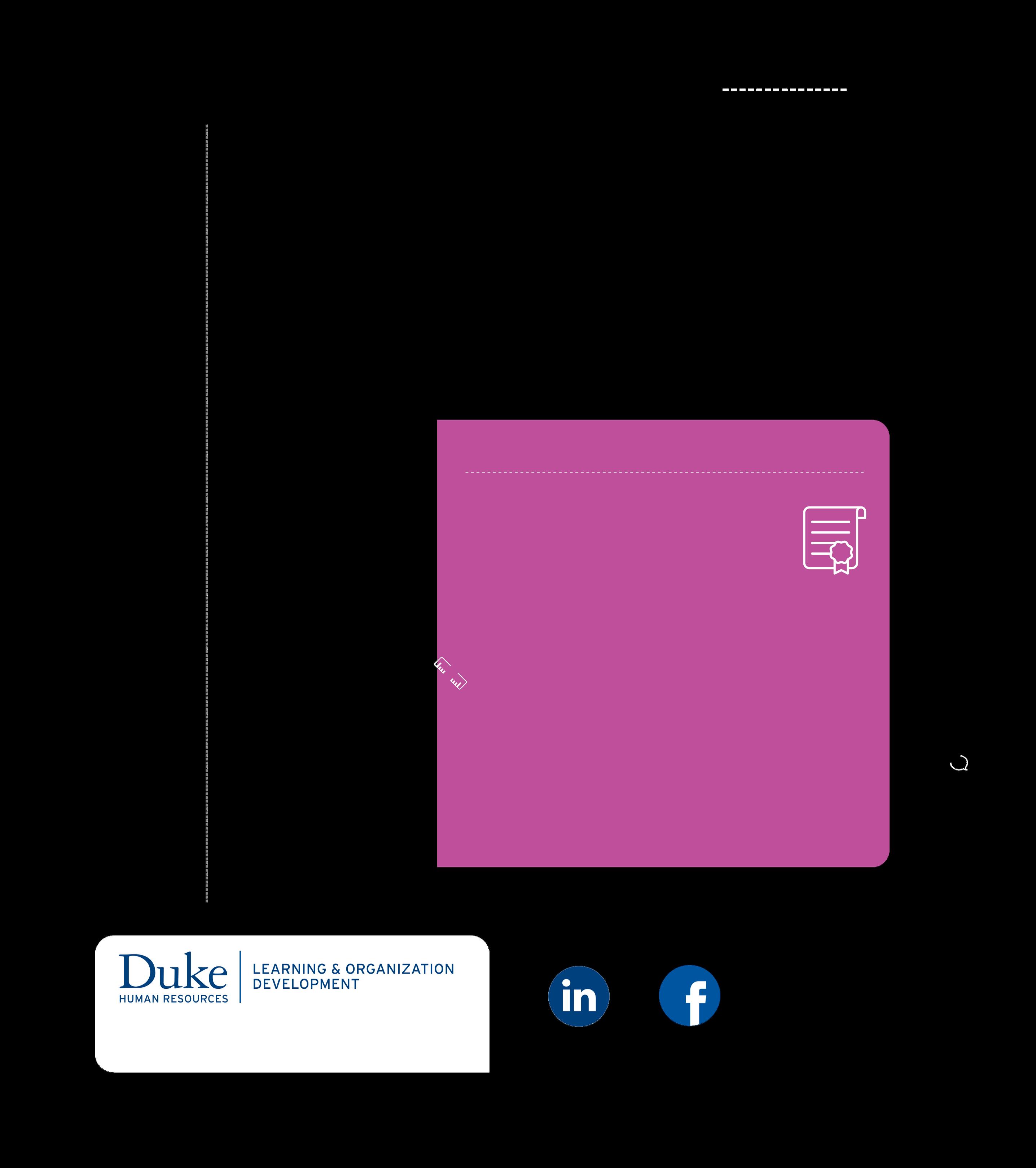 Duke is committed to providing employees with engaging and effective individual growth and professional development L&OD supports this commitment with research, curriculum design, and program facilitation of professional development courses designed to provide learning experiences and insight that can be immediately applied in the workplace.