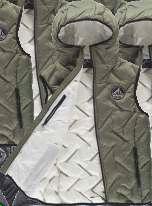 •ChalecoFÖLDacolchadoselladodecapuchaycuelloalto conunoriginalpatróndeselladoqueaportaestiloalconfortde sucorte.
