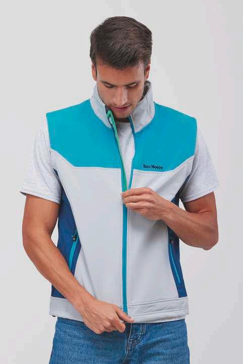 •ChalecoRÜFcombinadoconelcanesúacontrasteytejido exteriorreciclado.
