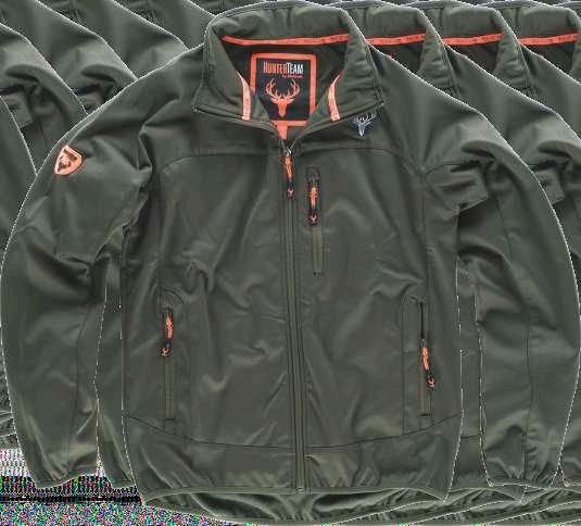 •Unepochepoitrineintérieureavecfermetureàzipetuneautre àsouffletavecrabatàpressions.Deuxpocheslatérales plaquéesavecrabatàpressions.Unepocheplaquéepoitrine avecfermeturescratchàl’intérieur.Unepocheàcompartiments surlamancheetpoignetélastiqueintérieur
