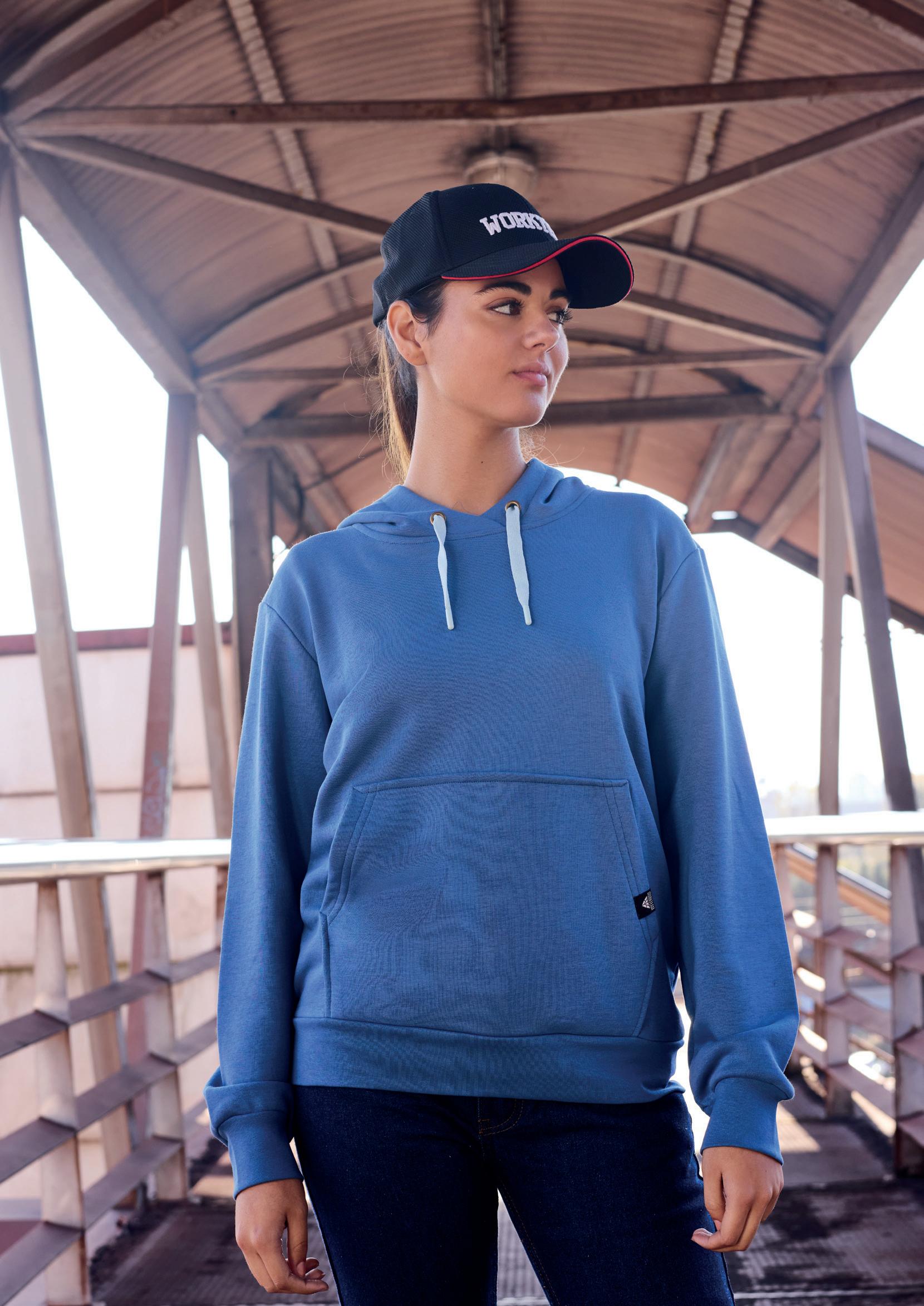 Sweat-shirt basique avec capuche et cordon ajustable. Coutures intérieures renforcées et recouvertes au niveau du col. Une poche centrale avec accés latéraux. Poignets et ceinture élastiques en point de côte. Tailles: S, M, L, XL, XXL, 3XL Composition: 70% Coton
