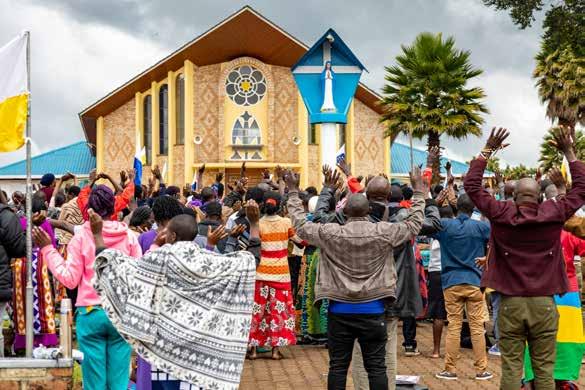 „Von Kibeho aus beten wir nicht nur für Afrika mit aktiver Beteiligung aller Gemeinden hier in Kibeho, sondern wir beteiligen uns auch an den verschiedenen Gebetsbrücken mit den anderen Kontinenten, beten den Rosenkranz und feiern die Heilige Messe auf Italienisch, auf Spanisch, auf Französisch, auf Portugiesisch, auf Englisch.