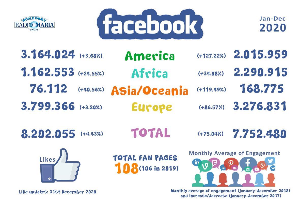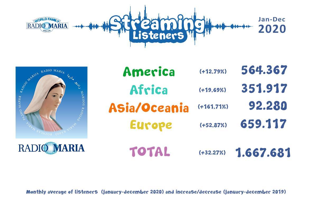 Streaming Radio Maria: average monthly listenersNumber of monthly users that arrive to the websites from social networks