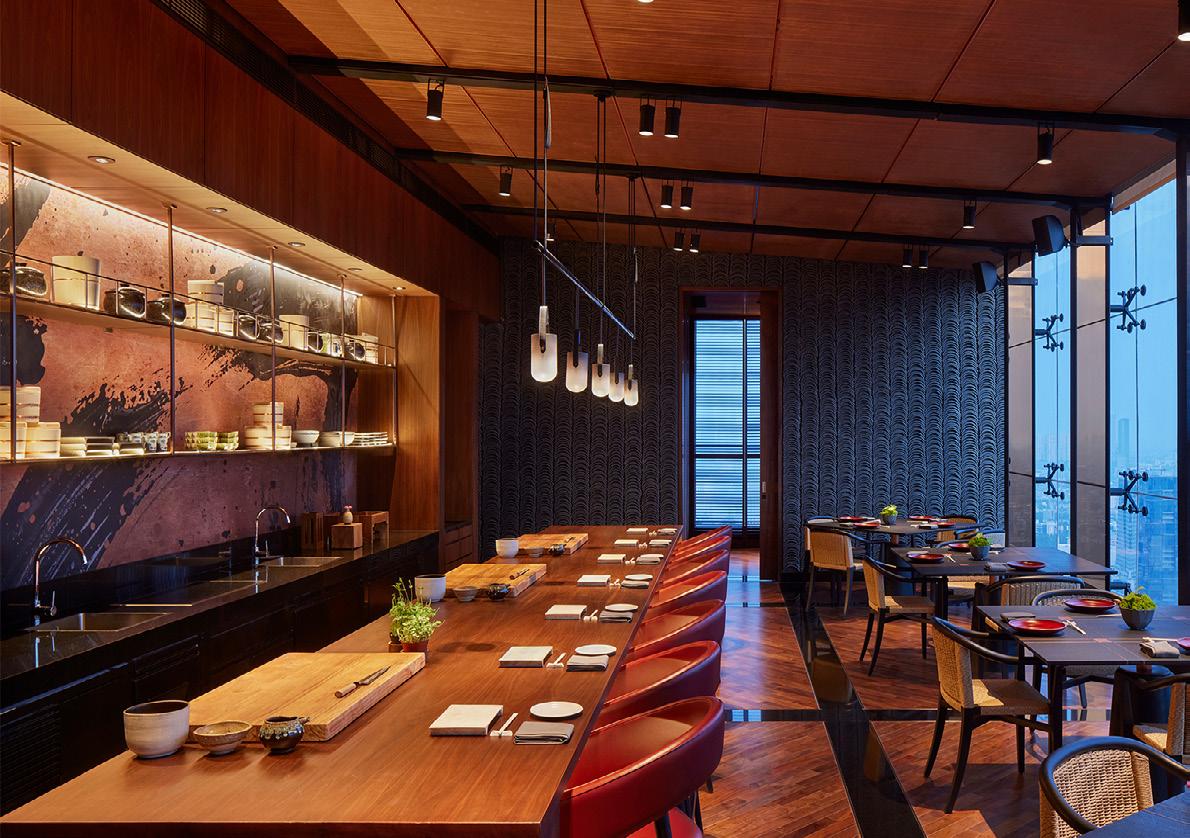 Perched at the summit of Park Hyatt Jakarta, KITA 喜多 Restaurant serves modern Japanese cuisine, including Teppanyaki, Shabu Shabu, Tempura, Robatayaki, Sushi, and Sashimi.