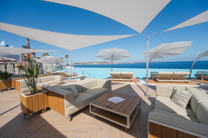 Situated next to the Malta National Aquarium, it’s a destination that perfectly blends natural beauty with stylish leisure. The venue features an elegant infinity pool overlooking the sea, making it the perfect place to unwind. Whether you’re lounging by the pool, sipping a cocktail, or indulging in Mediterranean-style cuisine, Café del Mar creates the ideal setting to enjoy spectacular sunsets in comfort and style.