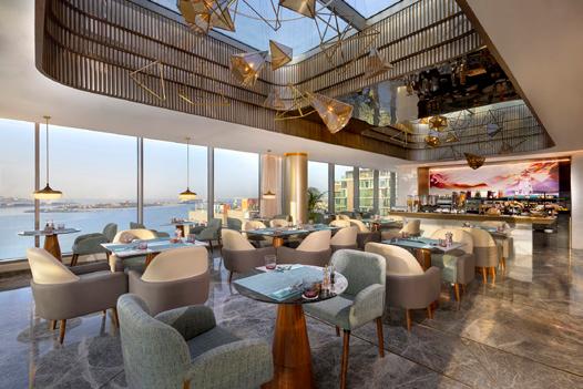 Located on the R Floor of TUMBI Hotels, Afia Restaurant offers a refined dining experience with stunning views of the Palm Jumeirah and the Arabian Gulf.