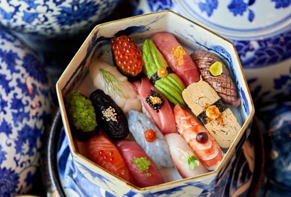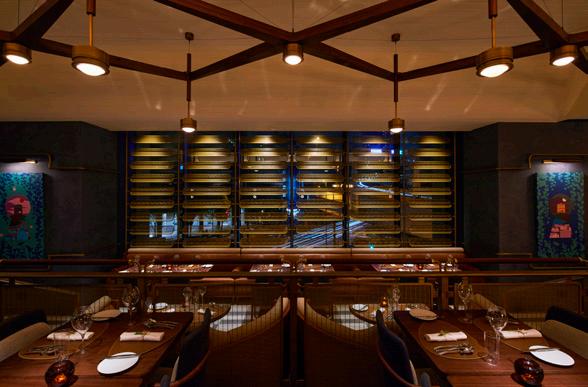 The open kitchen, centered around a char-fired robata grill and sushi bar, immerses diners in captivating storytelling and traditional Japanese culinary techniques. Heritage craftsmanship of the far East meets Dubai’s modern elegance in its design, with Bonsai and cherry blossom trees highlighting the significance of the seasons.