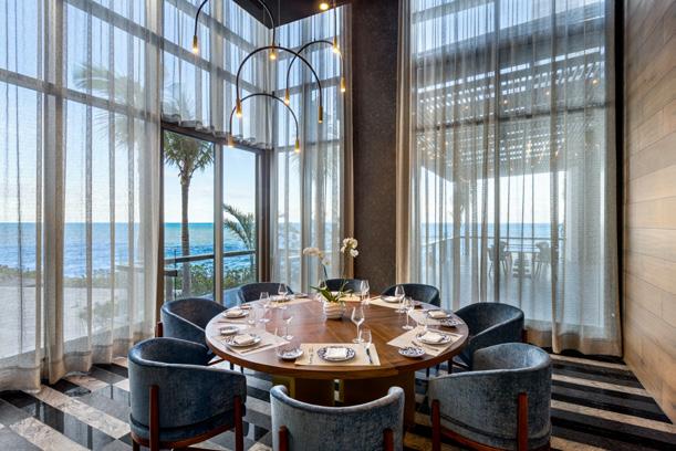 Perched on the resort’s iconic white sand coastline, the architecturally stunning cocktail bar offers a winning combination of breathtaking 180° seaside views, chic contemporary design, and modern sophistication.