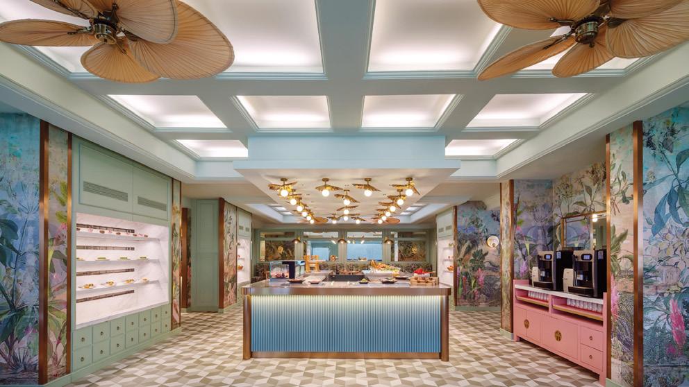 The restaurant’s design draws inspiration from Singapore’s natural beauty, blending elegance with a sense of place. Created by award-winning designer Emma Maxwell, the space features marbled tabletops, timber flooring, and graceful rattan ceiling fans, complemented by bespoke floral wallpapers and textiles by Kerrie Brown. Accents of nickel and brass add refined touches to a setting that feels both sophisticated and welcoming.