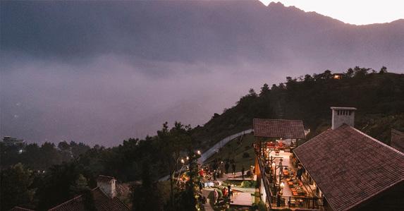 Sunset on the Rock Restaurant is located on a monolithic white rock at an altitude of 1,555m above sea level, where the brilliant sunset meets the majestic beauty of Muong Hoa Valley.