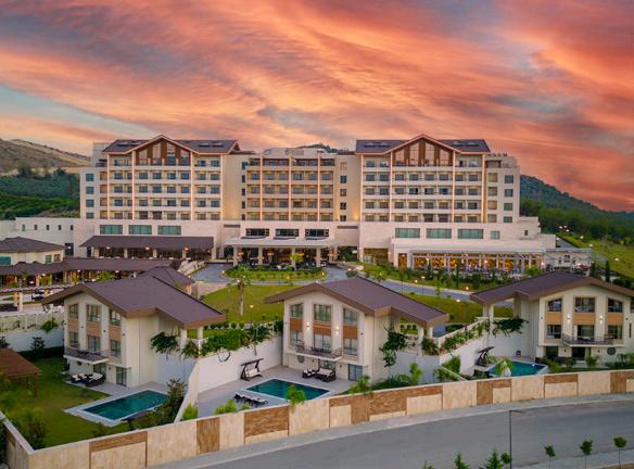 The Resort, which was built taking inspiration from traditional Turkish architectural style on 130.000sqm of land between pine forests, was renovated in 2014. Two-three floored buildings with deluxe rooms are located separately from each other with a magnificent landscape design.