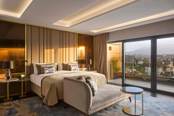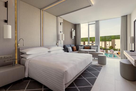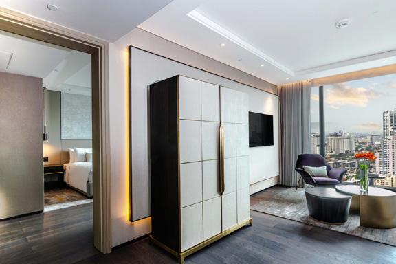 The hotel features spacious rooms and suites with floor-to-ceiling windows, luxurious amenities, and curated artworks. Culinary excellence is showcased across its distinctive dining venues, from modern Mediterranean to Asian-inspired rooftop experiences. Guests can unwind at the tranquil spa, enjoy personalized wellness treatments, or relax by the outdoor pool overlooking the city skyline.