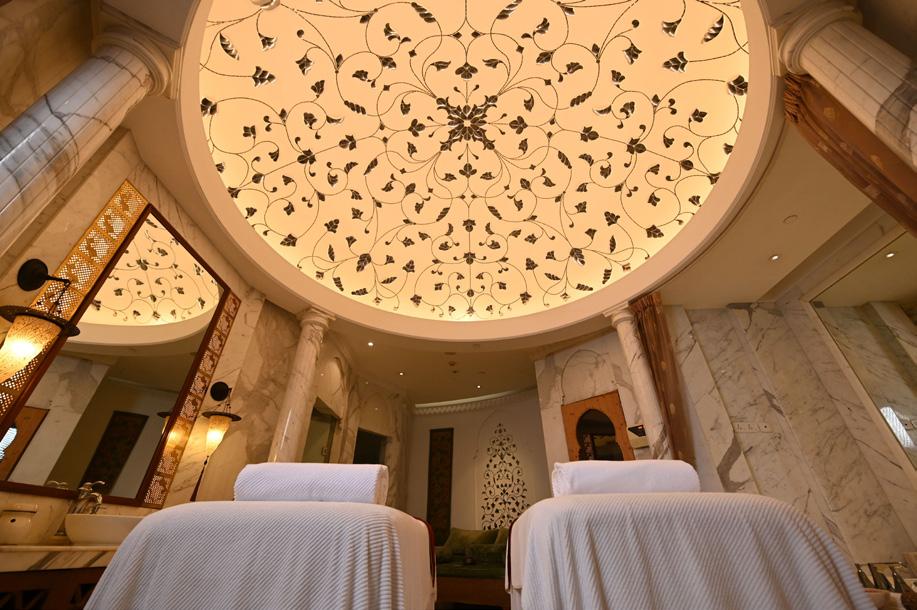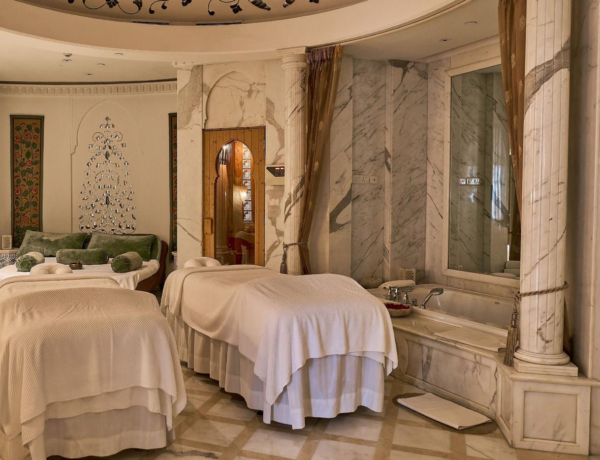 The spa offers a range of international massage treatments. In addition to a sauna, steam chamber, pool and jacuzzi, there are three massage rooms and three Moroccan bathrooms, where guests can enjoy a range of international treatments and look forward to a balanced break from sightseeing or business affairs.