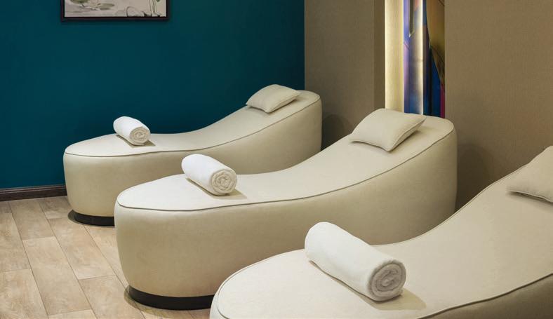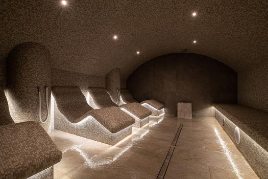 In the quiet thermal area, guests can enjoy the heated pool, jacuzzi, sauna, Turkish bath and sensory shower.