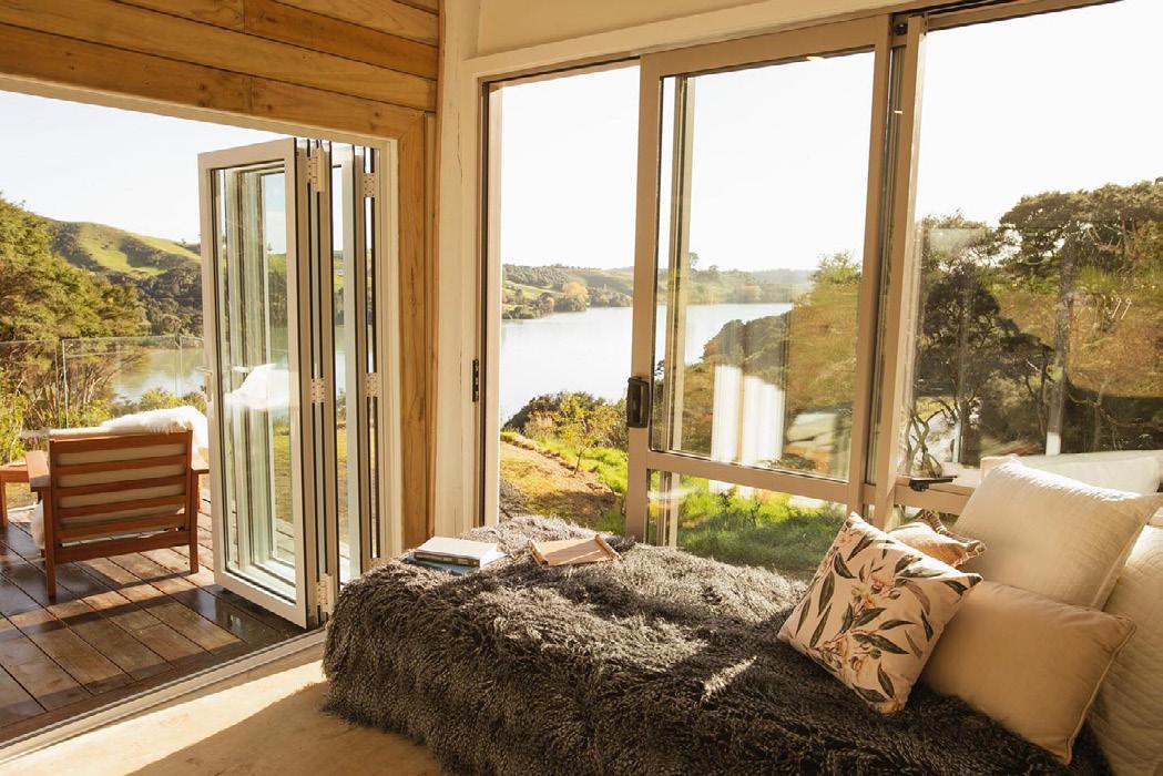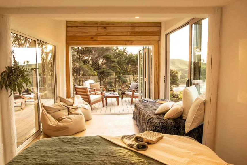 Tarata Eco Retreat is an exclusive off-grid getaway tucked along the pristine shores of Kāwhia Harbour in Te Waitere, New Zealand.