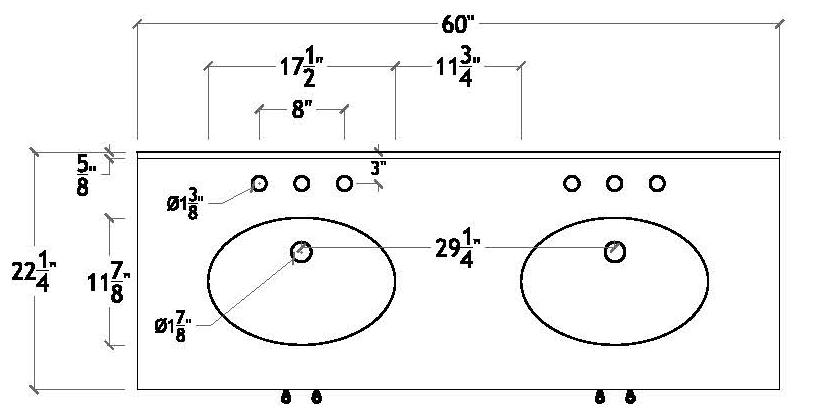 4” high backsplash included, not attached. Porcelain sink basin included, attached. For use with 8-inch widespread faucet, not included.
