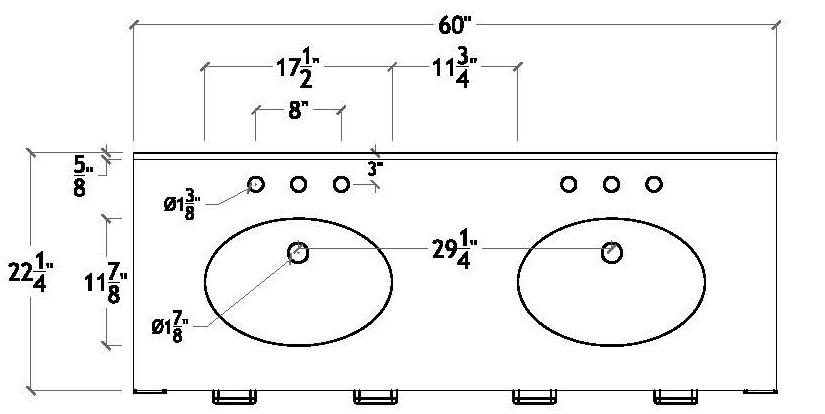 60” Width 34.25” Height 22.25” Depth