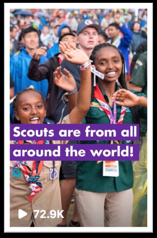 Pour le Scoutisme Mondial, nous do nnons la priorité au côté amusant et aux bienfaits du Scoutisme sur Instagram (pour faire connaître notre image de marque), avec comme objectif secondaire d'inspirer et d'éduquer les jeunes (croissance). Sur Facebook et Twitter, nous nous concentrons plutô t sur des nouvelles, l'éducation, partager des opportunités pour les jeunes.
